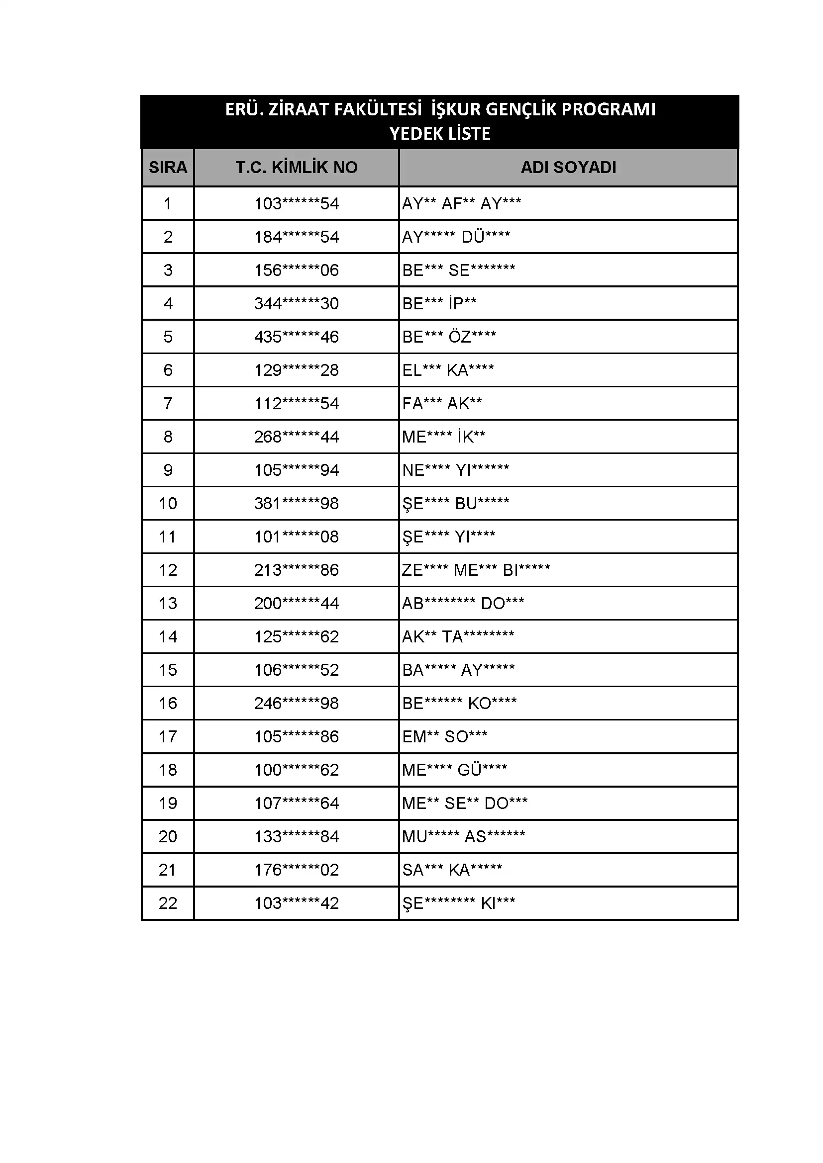 İŞKUR Gençlik Programı (İGP) kapsamında, Başvurusu alınanların değerlendirilmesi sonucunda oluşan YEDEK adayların listesi aşağı belirtilmiştir. Yedek adayların aşağıda belirtilen evrakları Fakültemiz 1. Katında yer alan İdari İşler Birimine teslim etmeleri gerekmektedir. Belgelerin son teslim tarihi 27.11.2025 Perşembe, Saat 17:00’dir.