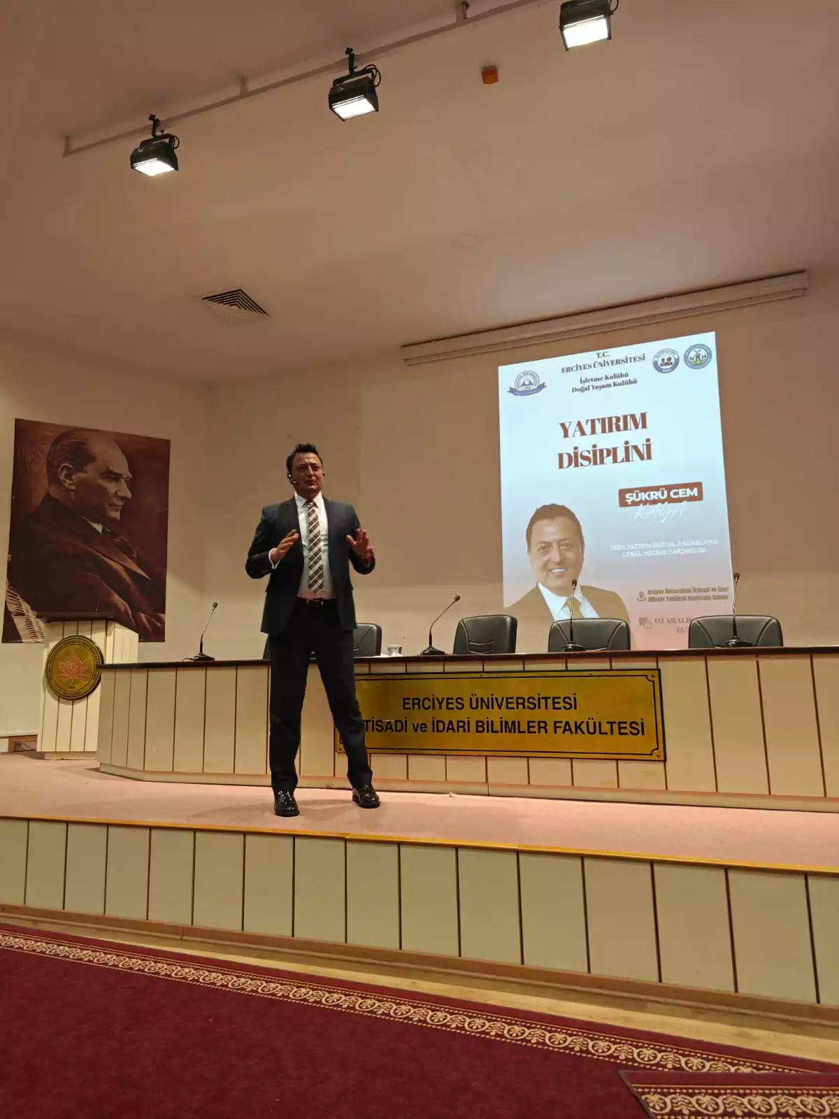 Üniversitemiz İşletme Kulübü ve Doğal Yaşam Kulübü iş birliğiyle düzenlenen “Yatırım Disiplini” konulu konferans, İktisadi ve İdari Bilimler Fakültesi Konferans Salonu’nda gerçekleştirildi.