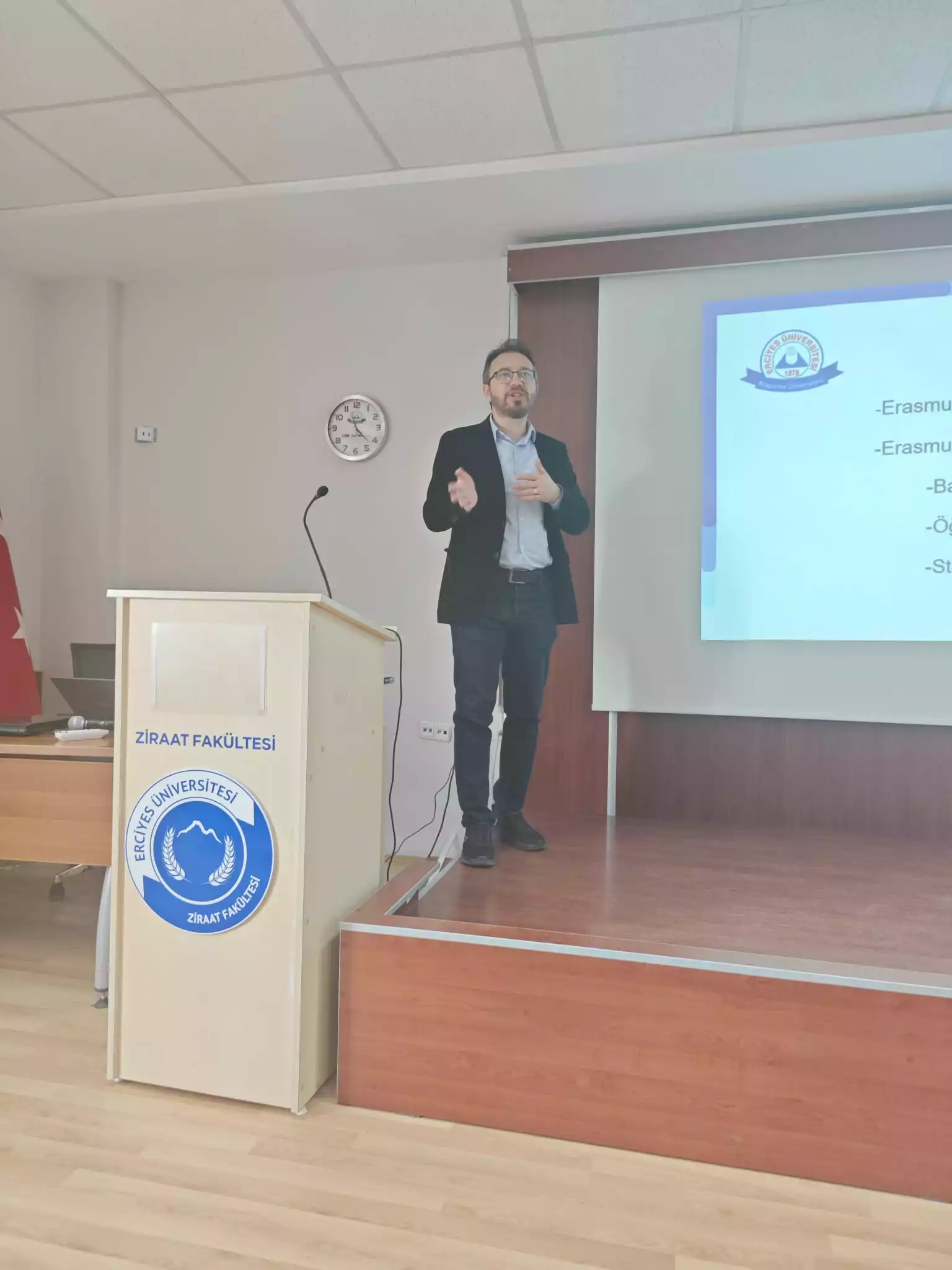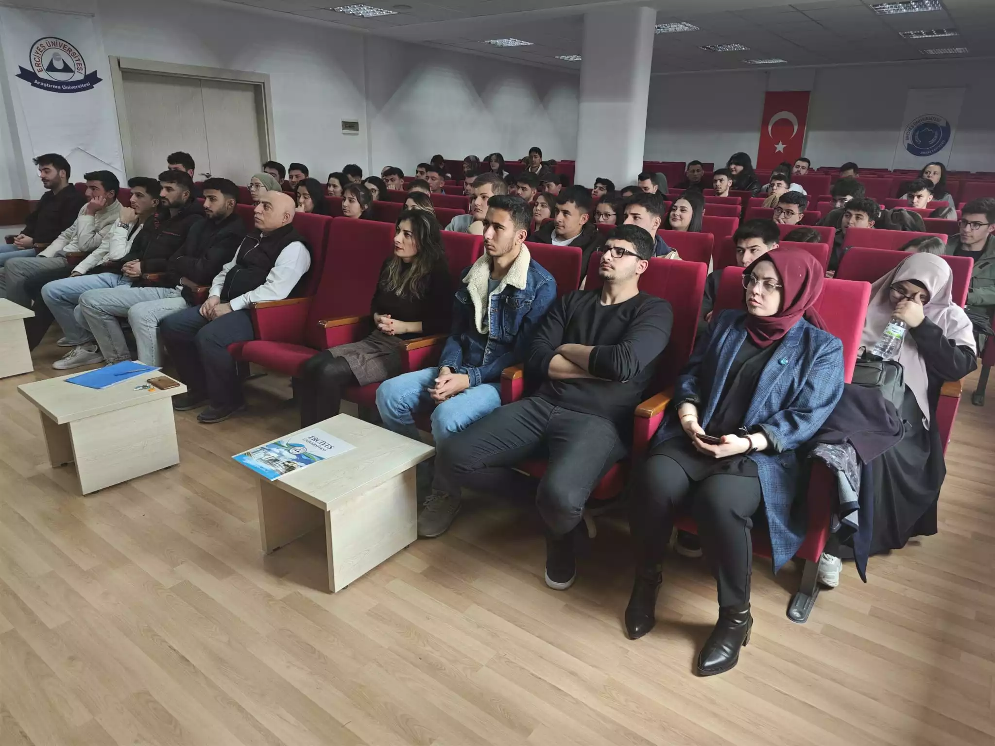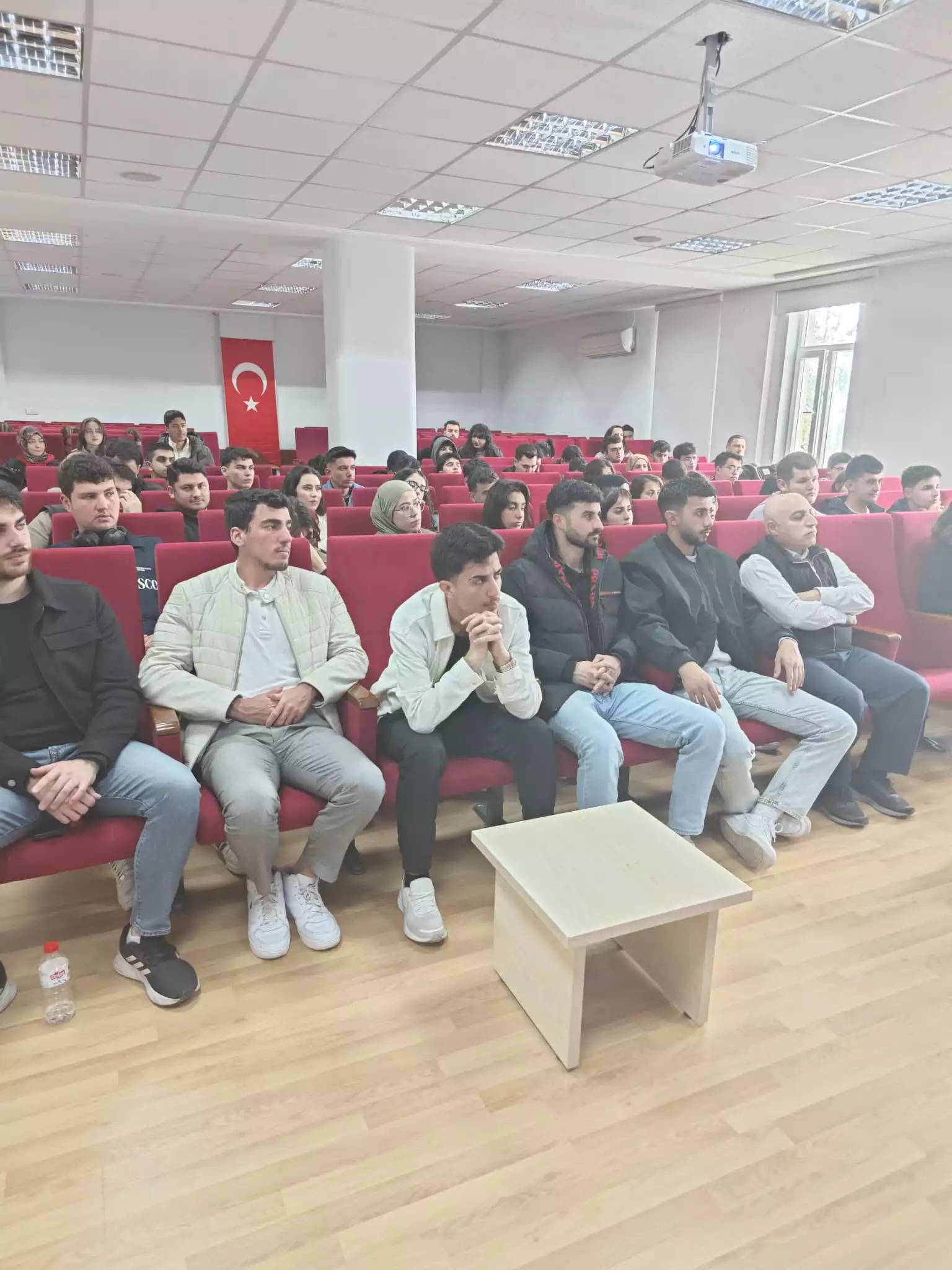 Prof. Dr. Sinan GERÇEK, Doç. Dr. Sümer HORUZ ve Dr. Öğr. Üyesi Aziz ŞATANA’nın sorumluluğunda bulunan Kariyer Planlama derslerimiz kapsamında, öğrencilerimiz için Erasmus kapsamında yurtdışı tecrübelerini geliştirmek, farkındalık yaratmak, bilgi ve motivasyonlarını arttırmak amacıyla; 25.03.2026 tarihinde Üniversitemiz Dış İlişkiler Ofisi Başkan Yardımcısı Öğr. Gör. Dr. Hacı Mehmet TANÇ bir konferans verdi. Sayın TANÇ, konuşmalarında Erasmus programının tanıtımı, öğrenme hareketliliği, staj süreçleri, dikkat edilmesi gereken hususları, gelecekteki ihtiyaçları ve başarı hikayesini paylaşarak, öğrencilerimizin sorularına yanıt verdi. Katılımlarından dolayı Sayın Hacı Mehmet TANÇ’a, öğretim üyelerimize ve öğrencilerimize teşekkür ederiz.